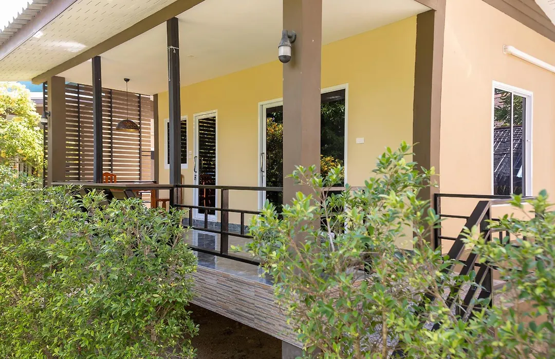 This Haad Chao Phao accommodation is equipped with a toaster, a stove top, and kitchenware for self-catering in an outdoor dining area. The property is a few moments from pizzeria Midnight Bistro. Providing direct access to a terrace, Apple Villas includes a dining table.